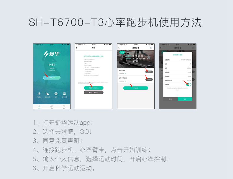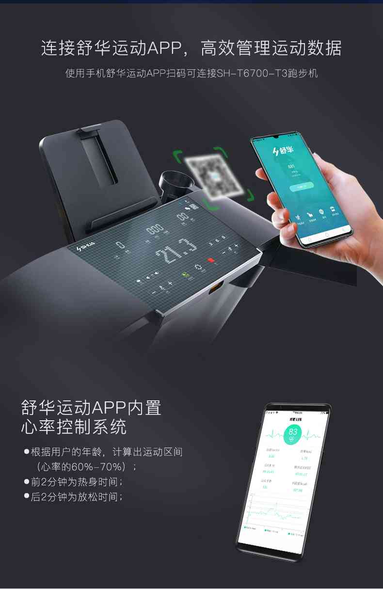SH-T6700-T3跑步机为了帮助用户进行更加科学有效的运动,搭载银河GalaxyAPP连接心率臂带实现心率控制,通过监测运动心率从而实现科学运动。
