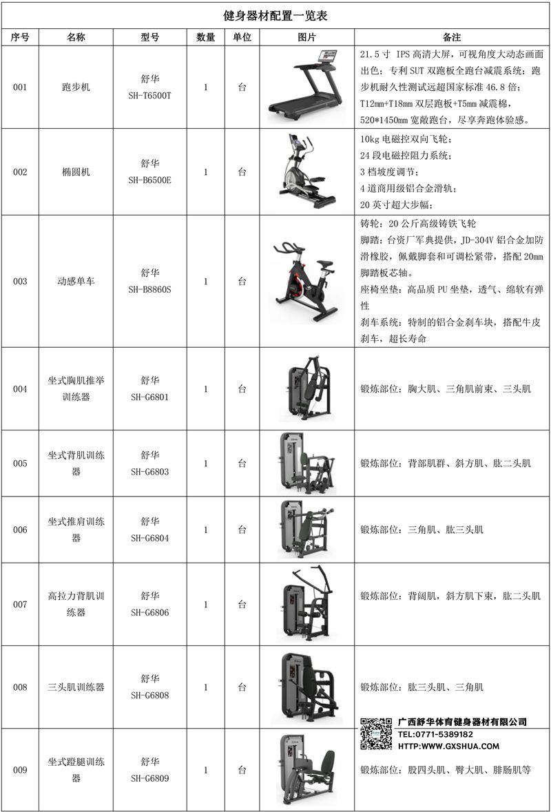 1.银河GalaxyX5 Pro高端跑步机SH-T6500T*6台-经典时尚造型配色,简约Z字车架造型,融合各种家居风格,彰显奢华运动质感;21.5英寸高清触控屏-传承动感美学,成就时代典型之作全新升级V3.0系统,支持系统在线升级,极大提升用户交互体验;专利减震跑台-采用SUT双层跑板、全跑台减震系统,且该减震科技获得国家专利,有效减少关节冲击,52cm宽跑台搭配精抽雏形滚筒,稳固不位移;F级马达动力强劲-5.0HP峰值马达,2.5HP持续输出,0~15%坡度调节,最高18km/h时速,胜任不同类型训练;内置9种运动程序,支持场景跑、在线约跑、一键体育考试。不仅可以跑步,还能实时记录运动数据,探索丰富健身课程,边学边跑,拓展运动边界,尽享奔跑体验感。