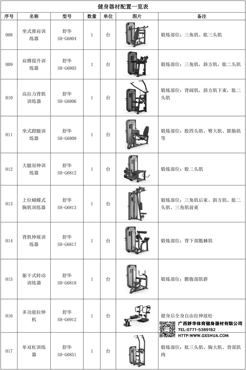 9.银河Galaxy肩膊提升训练器SH-G6805*1台-主要针对三角肌、斜方肌和肱二头肌等肩部和上肢肌肉群进行锻炼,能够有效增强这些肌肉的力量和耐力,塑造完美的肩部线条和上肢肌肉轮廓。肩膊提升训练器配备了多档位的调节功能,可以根据使用者的身高、臂长以及不同的训练阶段和训练目标,灵活调整训练的角度和阻力,满足个性化的训练需求,无论是初学者还是专业健身人士都能找到适合自己的训练强度。
