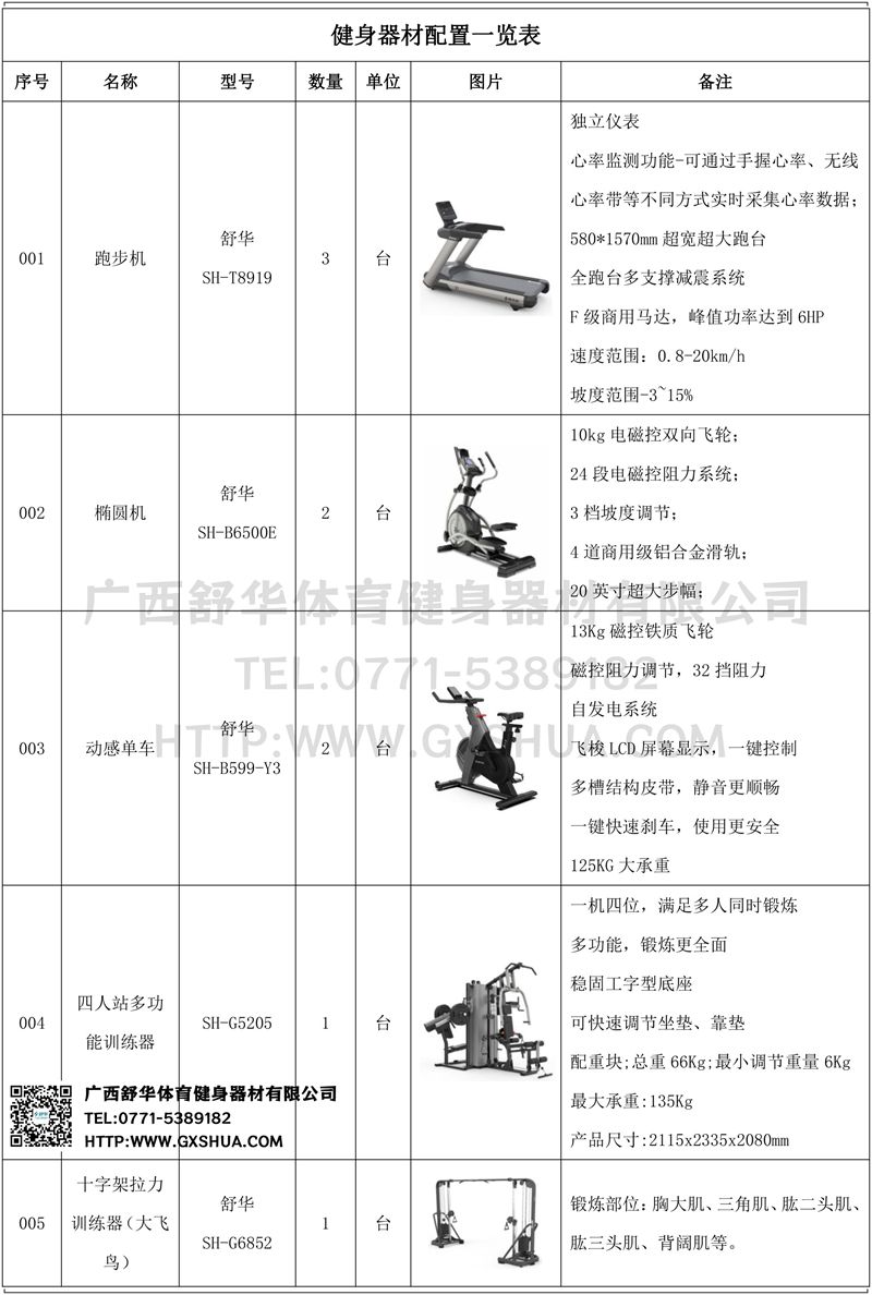 1.银河GalaxyV9跑步机SH-T8919*3台-580*1570mm超宽超大跑台-跑感舒适,跑台整体安全稳定;全跑台多支撑减震平台,保证跑台超强支撑力,达到180kg支撑,满足专业健身房需求。F级商用马达-超强马达,AC 3.0HP 交流,峰值功率达到6HP,F级商用品质。速度范围达到0.8-20km/h;V9跑步机可实现跑台扬升功能,坡度范围-3~15%,满足客户不同的锻炼需求。