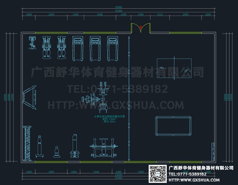 150m²企事业单位健身房根据客户需求及预算,有氧器材区域配置银河Galaxy跑步机、椭圆机、动感单车,多元化的有氧器材能够有效提升心肺功能;力量器械配置综合训练器,可拓展多种训练方法,提供针对性训练、多种组合等训练方式,全方位激活身体机能。自由力量区域配置哑铃套组、腹肌训练器等满足多样化训练需求,促使健身训练更丰富。单位健身房配置台球桌、乒乓球桌,为员工的业余生活增添了乐趣和选择。与传统的健身器材锻炼相比,台球、乒乓球具有更强的娱乐性和趣味性,能够吸引更多员工参与到健身活动中来,提高健身房的使用率,让员工在工作之余有更多放松身心的方式。