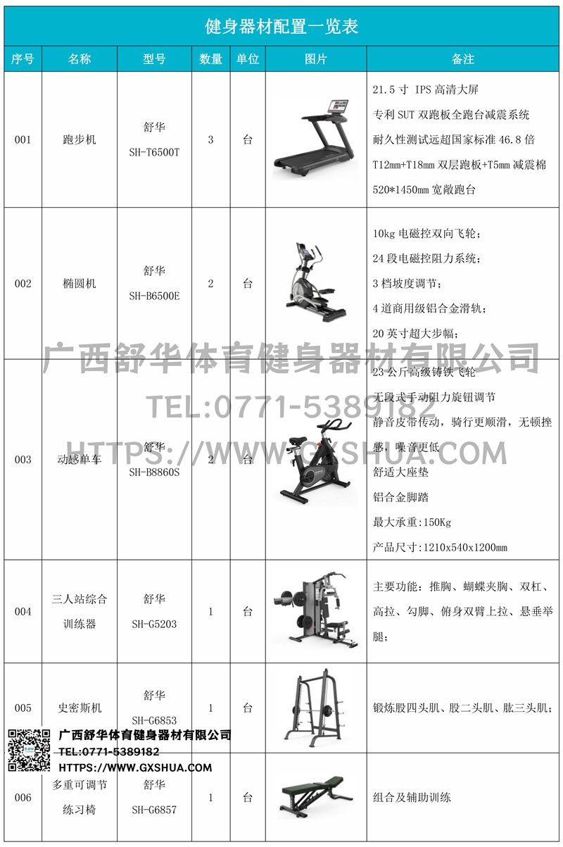 1.银河GalaxyX5 Pro跑步机SH-T6500T*3台-采用高性能电机,提供稳定动力,支持长时间高强度运行,适合长时间有氧训练,跑台宽敞,提供舒适跑步空间,减少运动中的束缚感,适合不同体型用户。配备先进减震系统,有效缓解跑步对关节的冲击,降低运动损伤风险,内置智能控制系统,支持多种预设程序和个性化训练计划,用户可根据需求调整速度和坡度,满足多样化训练。