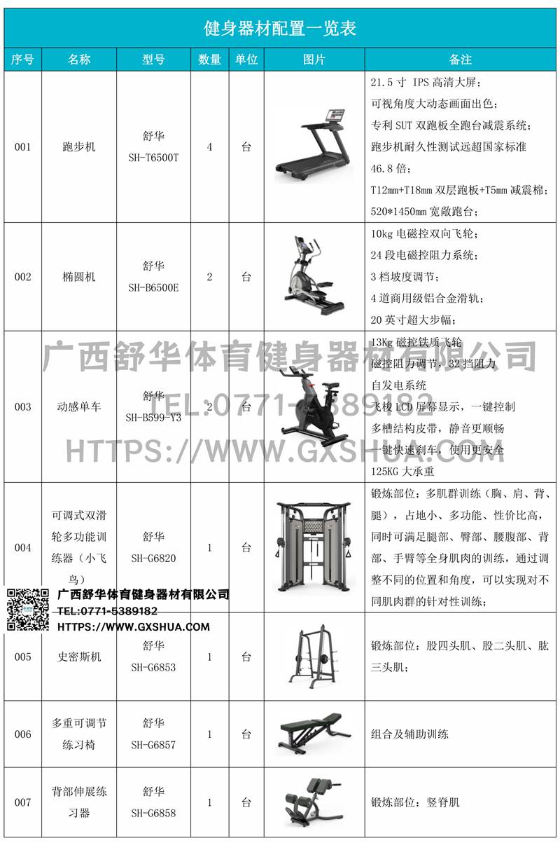 1.银河GalaxyX5 Pro跑步机SH-T6500T*3台-专利减震跑台-采用SUT双层跑板、全跑台减震系统,且该减震科技获得国家专利,有效减少关节冲击,52cm宽跑台搭配精抽雏形滚筒,稳固不位移;F级马达动力强劲-5.0HP峰值马达,2.5HP持续输出,0~15%坡度调节,最高18km/h时速,胜任不同类型训练;内置9种运动程序,支持场景跑、在线约跑、一键体育考试。不仅可以跑步,还能实时记录运动数据,探索丰富健身课程,边学边跑,拓展运动边界,尽享奔跑体验感。