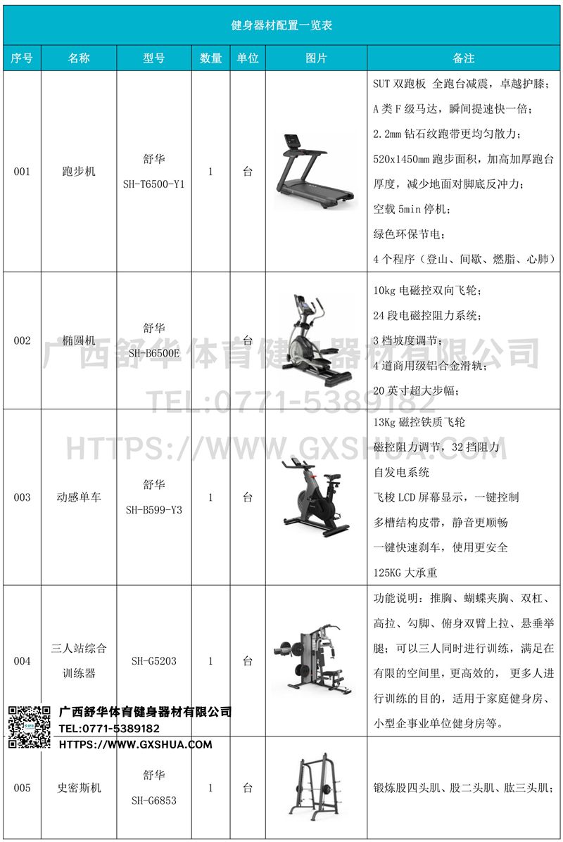 史密斯机(1台),多重可调节练习椅(1台),腹肌训练器(1台),6付哑铃套组(1套),可调哑铃凳(1张),可以实现对不同肌肉群的针对性训练,满足肌肉训练需求,全方位激活身体机能。