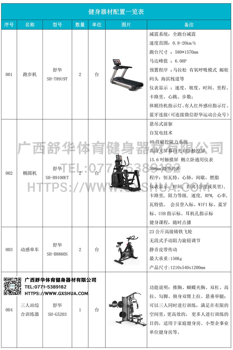 1.银河GalaxyV9跑步机SH-T8919T*2台-V9+采用全跑台减震设计,为跑者提供舒适的落脚地感和稳定的跑步支撑,良好的缓冲防护,降低膝关节受伤风险。商用大跑台,为跑者提供从容奔跑空间,180kg承载力,580*1570纯跑台面积,满足专业健身需求。V9+采用F级商用马达,6HP峰值马力,20km/h最高速度,提供源源不断的动力。V9+内置健身直播软件,每周提供直播课程,内含大量专业线上健身点播课程,可为健身房不同人群提供多样化健身课程服务。