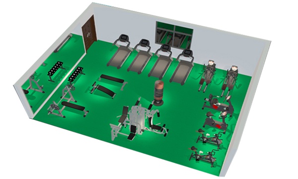 此方案要求面积不小于60平米,我们会根据您个人的实际情况和场地面积而定。此方案推荐小型健身工作室、单位健身房、酒店会所健身房、学校等健身房配置。