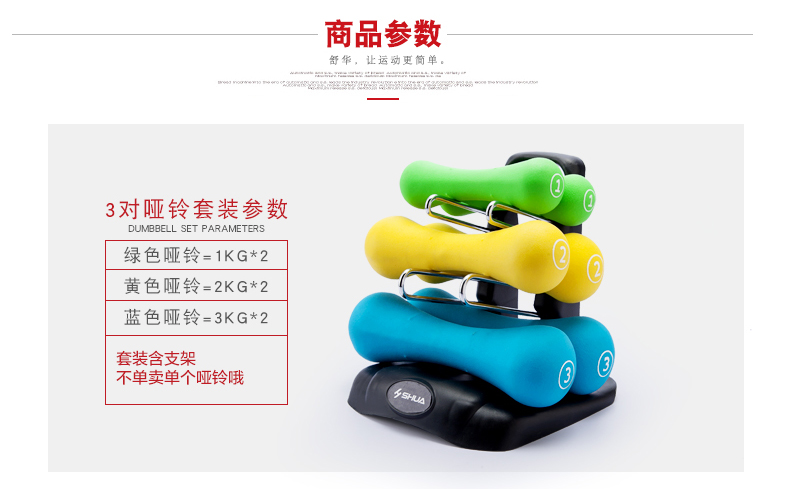 银河GalaxySHUA浸塑哑铃套装 家用男士女士健身时尚环保健身运动器材