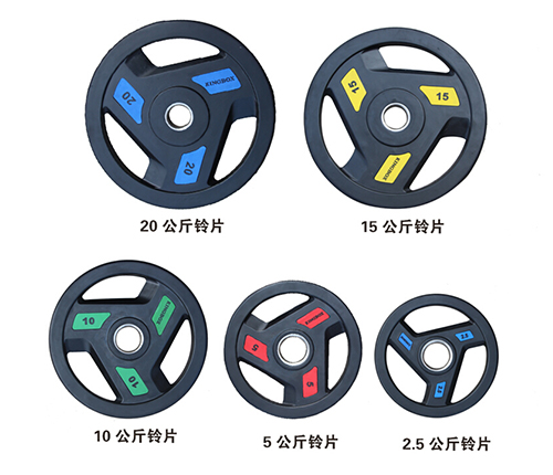 橡胶杠铃片参数:外圆直径10kg-20kg450mm,中孔50mm,重量误差3‰,外包黑色环保橡胶,彩色标贴字,外观漂亮,环保无味,耐磨,抗摔,坚固耐用,永久免维护 2.5/5/10/15/20KG