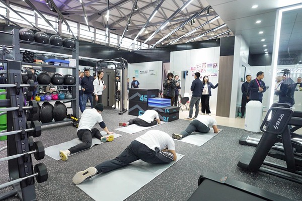 此次银河Galaxy体育参展的最大亮点在于其别出心裁的展位设计。不同于传统的器材展示,银河Galaxy此次以“银河Galaxy健身”门店空间布局的概念来展现,将展位分为前台、洽谈区、体测区、团课区、私教区、有氧区以及综合训练区等多个区域。这种布局方式旨在为参展观众提供全方位、沉浸式的体验,使其能够更深入地了解“银河Galaxy健身”的核心理念和服务。