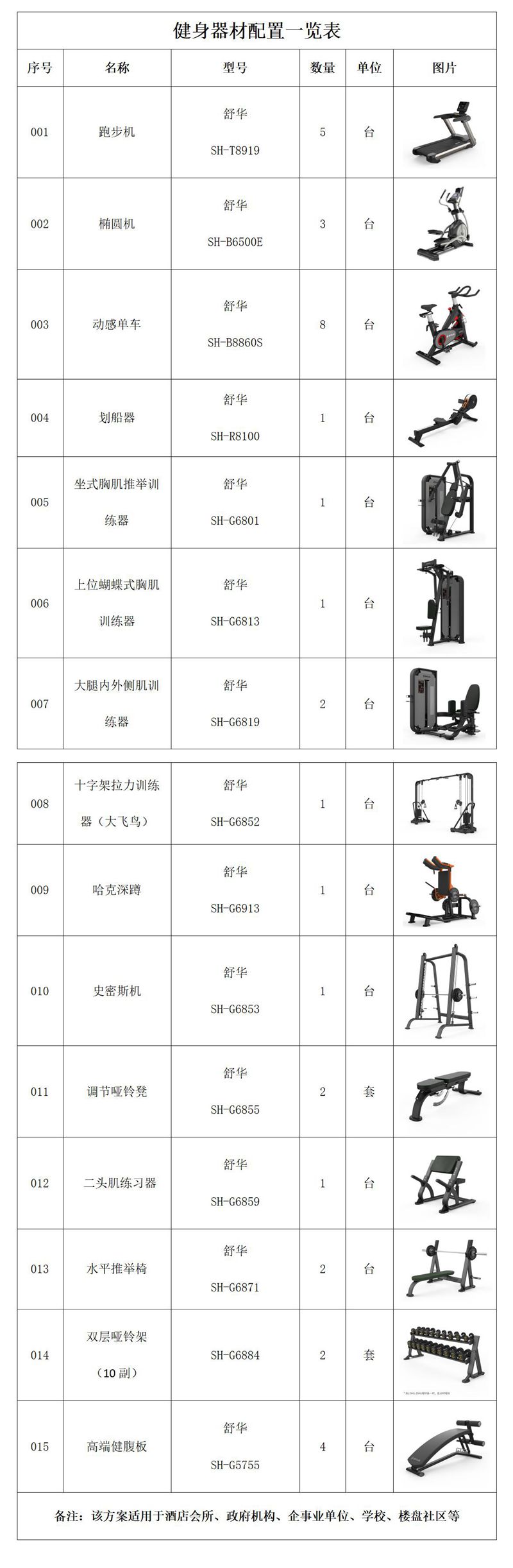 健身器材配置说明∶