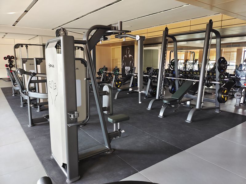 10.史密斯机SH-G6853*1台-锻炼部位:股四头肌、股二头肌、肱三头肌;用于进行深蹲、硬拉等自由重量训练,增强下肢和核心力量。